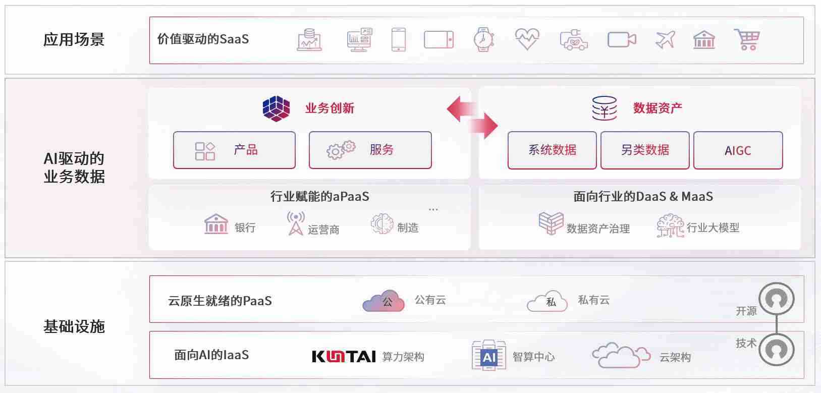 数字时代,,围绕企业数字化转型的关键要素,,,z6com尊龙数码开创性的提出数云融合战略和技术体系框架,,,,着力在云原生、、、、数字原生、、、、AI原生和信创产业上架构产品和服务能力,,为处在不同数字化转型阶段的快消零售、、汽车、、金融、、、医疗、、政企、、、、教育、、运营商等行业客户提供泛在的敏捷IT能力和融合的数据驱动能力,,,构建跨界融合创新的数字业务场景和新业务模式,,,助力企业级客户建立面向未来的核心能力和竞争优势,,,全面推动社会的数字化、、、智能化转型升级。。